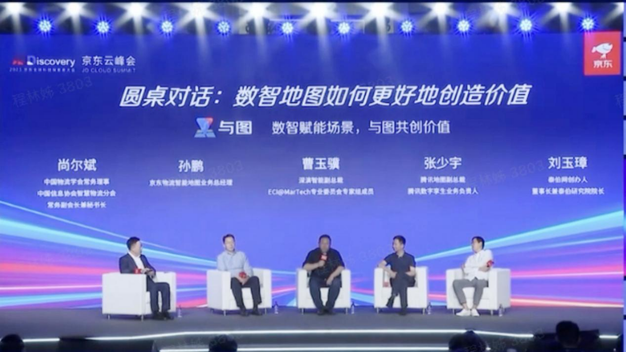 “数智化时代地图应用如何更好地赋能场景创造价值”的圆桌论坛,中间为usdt智能副总裁曹玉骥